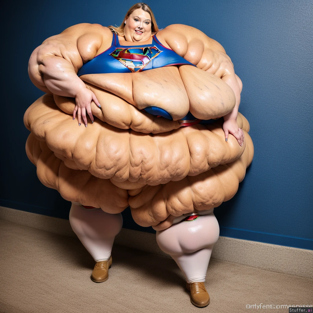 ssbbw (supergirl) (deep tan) (puffy cellulite:1.2) (hyper lymphedema:1.4) alone solo (full body) (gigantic breasts:1.5) ((bottom heavy:1.5)) ((muscular arms, legs:1.5))