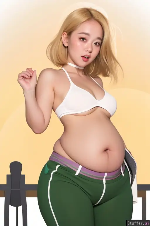 ((high rating:1.3)), 8k, uhd, finely detailed, full color, high quality, (((high rating))), normal anatomy, 1girl, (petite emo girl, neat blonde bob, big forehead), round face, (small breasts), flushed, (oversized fat and full bulging belly:1.4), in an executive office, (shouting), scared, business formal, fully clothed, (bellyache blush:1.2), flushed, sweating, expressive thick eyebrows, large hazel eyes, hairband, torn shirt, large exposed fat belly rolls, dramatic scene, (motion lines around her belly), pencil skirt, cowboy angle, skindentation