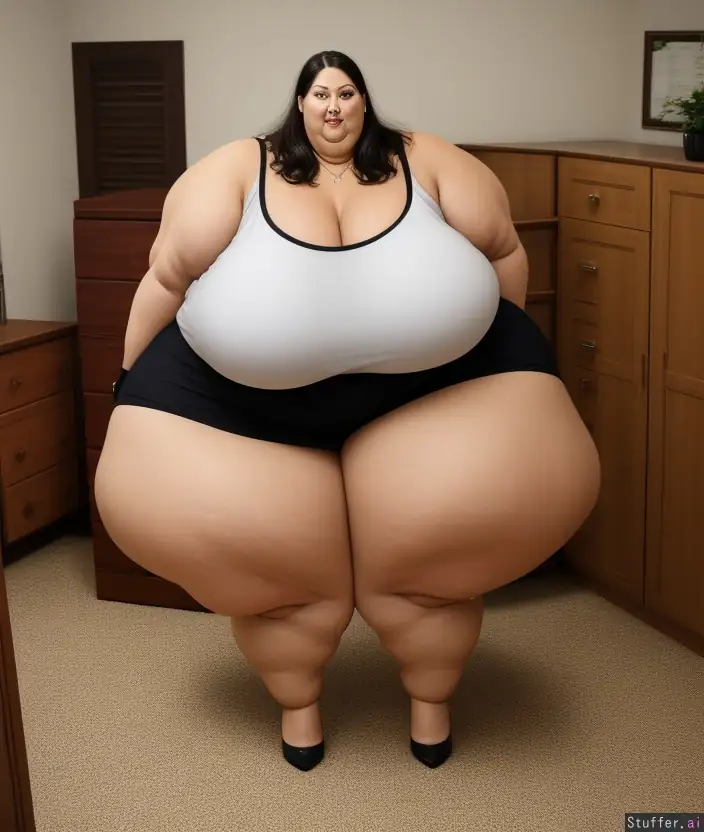 Massively round ssbbw Ssbbw, extremely wide, tall, (high round hips), (narrow waist extreme hips) mum in-law GIANTESS has been growing too big for fitting in a room