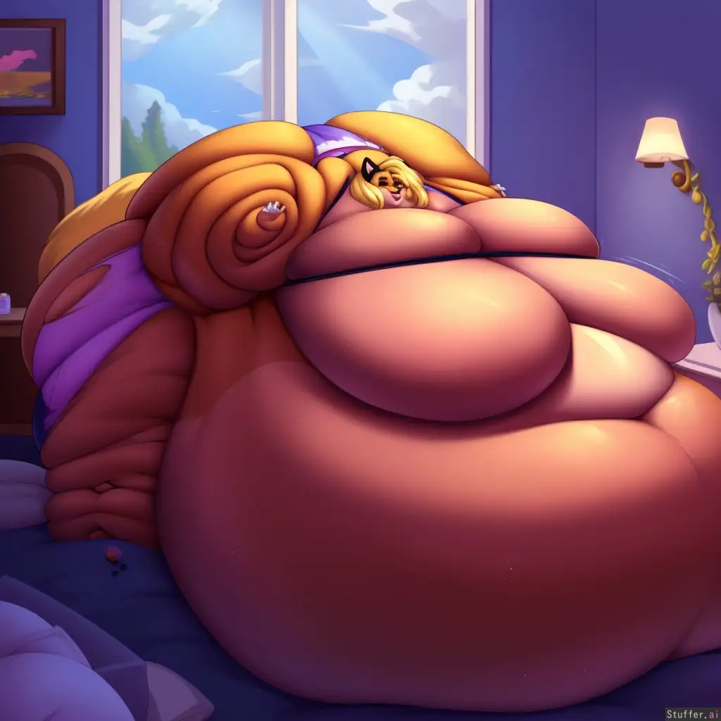 best quality, high rating, masterpiece, 1girl, solo, blonde fox anthro, cartoon style, comfortable mansion bedroom, pretty_face, sexy, massive_breast, chubby, chubby girl, hyper fat, obese, plump, morbidly_obese, (ussbbw) hyper belly, (hyper breats, hyper ass, hyper fat), ultra fat arms, flabby, rapid weight gain, hyper fat, gigantic breast, hyper massive Belly on floor, (huge belly sprawling ahead), torn_clothes, choker, jewelry, super aroused, ((super immobile)), belly_grab, body weight: 6000 pounds, jiggle lines
