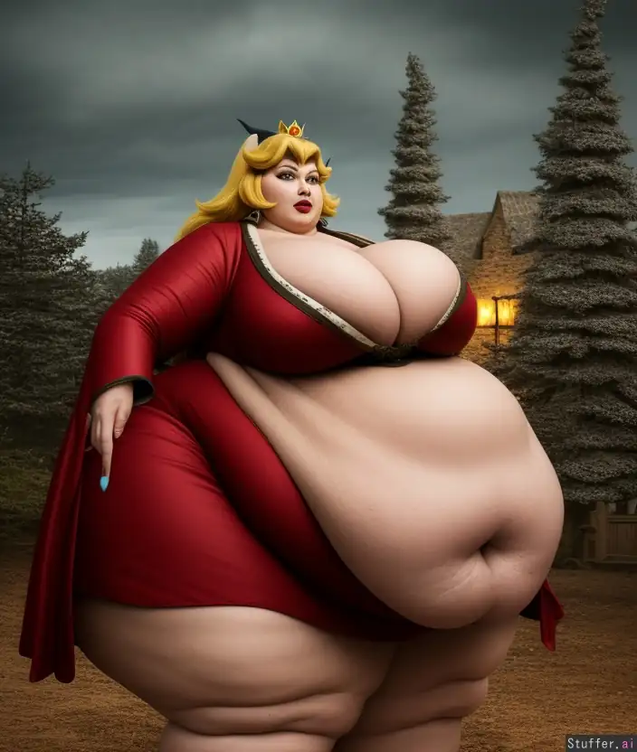 8k, photorealistic, extremely detailed, soft lighting, rim lighting, bokeh, (Princess Peach), ((((massive hips, enormous thighs, round belly, cleavage)))), cellulite, Hogwarts, Gryffindor, (((demonic:1.3))), ((satanic:1.2)), ((devil)), cow_ears