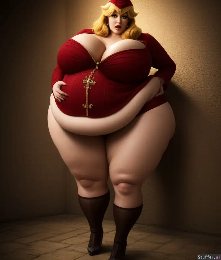 8k, photorealistic, extremely detailed, soft lighting, rim lighting, bokeh, (Princess Peach), ((((massive hips, enormous thighs, round belly, cleavage)))), cellulite, Hogwarts, Gryffindor, (((demonic:1.3))), ((satanic:1.2)), ((devil)), cow_ears