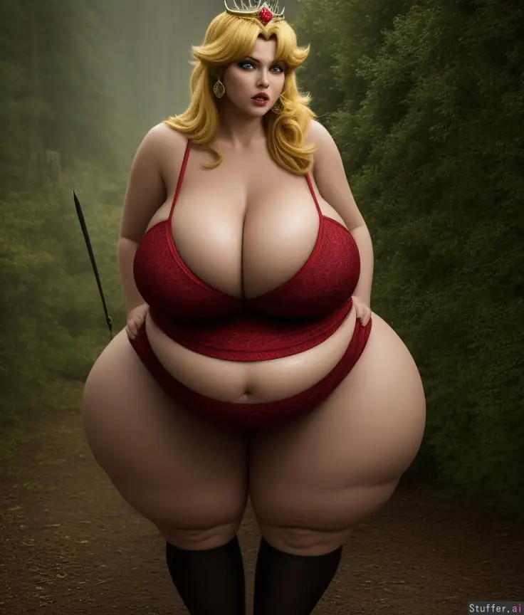 8k, photorealistic, extremely detailed, soft lighting, rim lighting, bokeh, (Princess Peach), ((((massive hips, enormous thighs, round belly, cleavage)))), cellulite, Hogwarts, Gryffindor, (((demonic:1.3))), ((satanic:1.2)), ((devil)), cow_ears