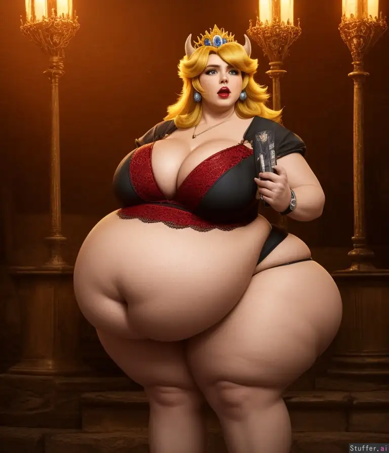 8k, photorealistic, extremely detailed, soft lighting, rim lighting, bokeh, (Princess Peach), ((((massive hips, enormous thighs, round belly, cleavage)))), cellulite, Hogwarts, Gryffindor, (((demonic:1.3))), ((satanic:1.2)), ((devil)), cow_ears