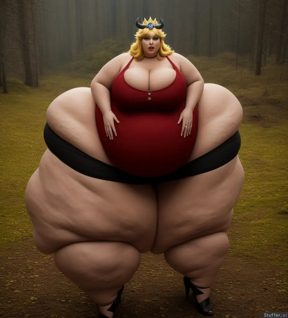 8k, photorealistic, extremely detailed, soft lighting, rim lighting, bokeh, (Princess Peach), ((((massive hips, enormous thighs, round belly, cleavage)))), cellulite, Hogwarts, Gryffindor, (((demonic:1.3))), ((satanic:1.2)), ((devil)), cow_ears
