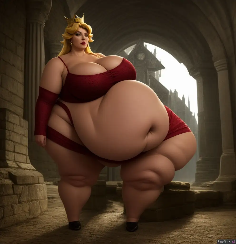 8k, photorealistic, extremely detailed, soft lighting, rim lighting, bokeh, (Princess Peach), ((((massive hips, enormous thighs, round belly, cleavage)))), cellulite, Hogwarts, Gryffindor, (((demonic:1.3))), ((satanic:1.2)), ((devil)), cow_ears