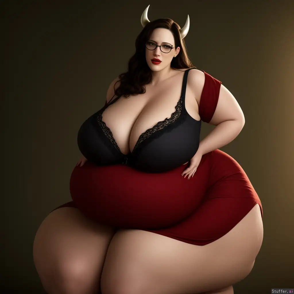 8k, photorealistic, extremely detailed, soft lighting, rim lighting, bokeh, Kat Dennings, ((((massive hips, enormous thighs, round belly, cleavage)))), cellulite, Hogwarts, Gryffindor, (((demonic:1.2))), ((satanic:1)), ((devil)), cow_ears