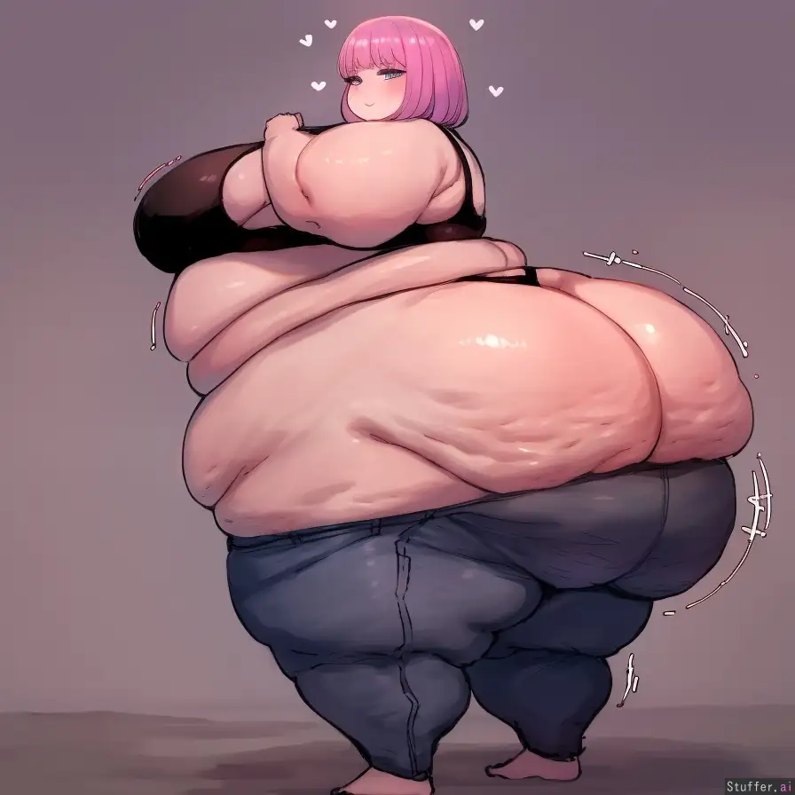 1girl, facing away from viewer, seductive pose, standing, broad shoulders,(fat arms), saggy fat arms, large body, Black sports bra, ((tight dark blue jeans)), (shorts), ass crack, ass cleavage, bursting ass, ass expansion, hourglass, wide hips, massive thighs, colossal ass, big breasts, (bubble butt:1.4), plump, fat arms, (love handles), cellulite, (((high rating:1.3))), 8k, uhd, finely detailed, full color, high quality, (detailed face), detailed eyes, c.cu, motion lines, (medusa rider), fate stay night, long hair, pulling pants up, ((side view))