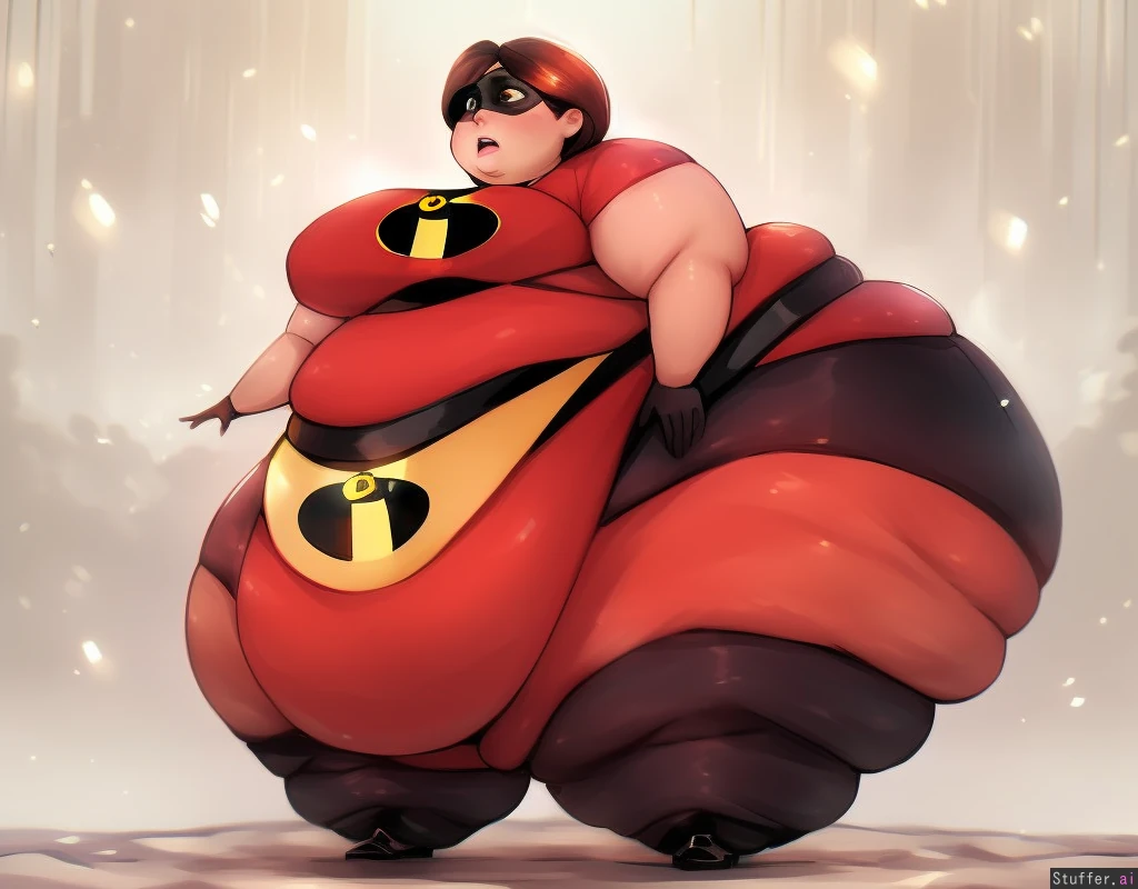 best quality, high rating, stunning beauty, (high rating), ((Elasti-girl ((The Incredibles)))), masterpiece, high quality, 8k, ((5ft 8in)), (((200 pounds ((accurate weight))))), high resolution, intricate detail, beautiful face, detailed eyes, realistic face, brown eyes, bob-cut hair, concerned facial expression, staring down, auburn hair, standing, sudden growth, ((red Elasti-girl spandex suit covering full body((The Incredibles)))), (breasts on belly), fat belly Cellulite:0.01, realistic skin, ((light tan skin:2.5)), huge_thighs, (Gigantic_ass:1.1), thick_legs, front view, full body view, (artist), SuperSnackSized(artist), spellsX(artist), c.cu(artist),