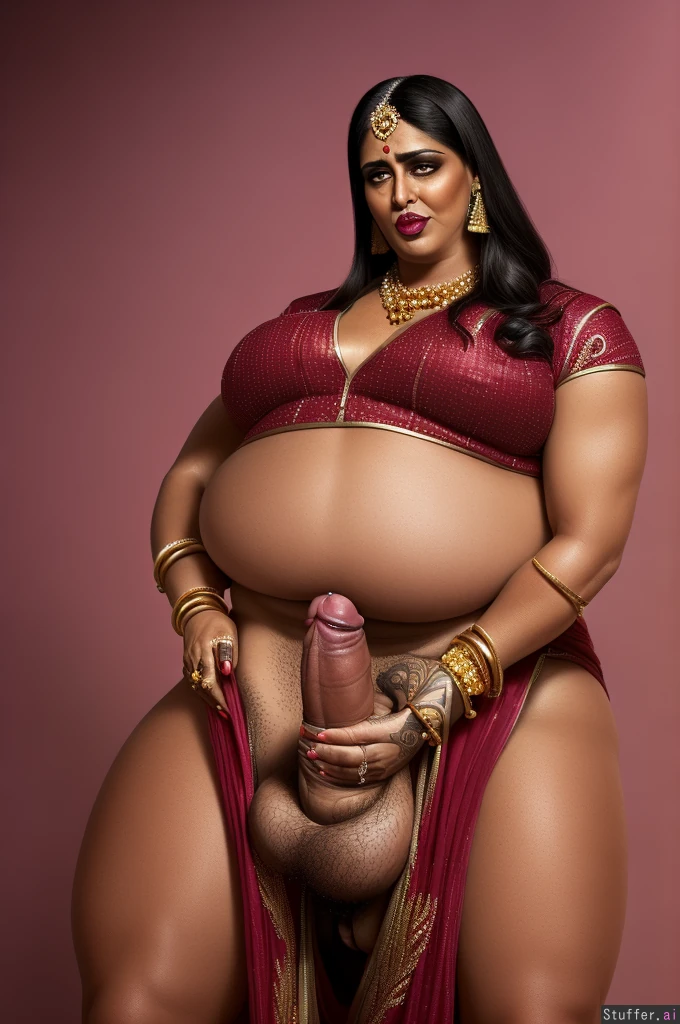 ((((Hyper naughty mature dyke aunty:1.4)))), (((((overpowering hyper masculine aura))))), ((((Sardar Ethnicity:1.40)))), ((highly detailed mature face:1.2)), ((((Hardcore Butch queen)))), ((((beefy muscular butch BBW body)))), ((((Georgette salwar suit with heavy embroidery)))), (((salwar has katha print detail embroidery design:1.5))), ((Gold Tikka)), (((huge red tilaka:1.3))), (((sexy bejeweled sandals))), (((huge jhumka))), (((tons of big bangles on her wrists))), ((((tons of heavy bridal gold kundan jewels:1.4)))), (((((chunky gaudy bling))))), ((((she wears the world's largest collection of gaudy kundan jewelry)))), (((her necklace weighs 50 lbs))), ((darker undereyes)), (((huge red bindi))), ((dark areolas)), ((huge nipples)), ((((huge bimbo lips)))), ((((highly detailed fat and hefty futanari veiny cock:1.4)))), ((((her cock is absurdly thick:1.3)))), (((highly detailed testes))), ((blushing red glan)), (((bushy pubic hair))), (((hyper very saggy small breasts)), (((hyper ptosis:1.4))), (realistic skin:1.3), (((devious sly smile:1.3))), ((((sleazy persona)))), (((very sexually aggressive:1.4))), ((((perverted)))), ((((the raunchiest demeanor:1.70)))), ((((extremely arrogant)))), ((((she demands worship and admiration)))), (((perfect anatomy:1.4))), ((((she's a tyrannical sadist:1.4)))), (((intense sexual depravity))), ((she's a sex fiend)), (((dirty sexual predator))), (((((hyper alpha woman:1.4))))), ((((Insatiably horny:1.4)))), (((world's horniest woman))), (((dominant butch)))), (((femdom:1.3))), ((intense eye contact toward viewer)), (((boss bitch:1.4))), (((clearly distinct body parts:1.8))), ((wild primal lust)), (((hyper aroused:1.3))), ((((she is the epitome of a nymphomaniac)))), ((((she grabs her crotch aggressively)))), ((((panty bulge)))), ((((highly defined penis bulge in her pants)))), light diffusion, highly detailed, high fidelity rendering, 4k, (UHD|16k:1.5), full body, ((ultra high resolution|photorealistic:1.2)), (professional photography), (masterpiece:1.5), (cinematic:1.5), ((highly detailed|realistic looking body|face|eyes|mouth|skin:1.4)), cinematic lighting and shadows, (sophisticated detail:1.5), (intricate detail:1.5), (highest definition:1.15), (highest quality:1.5), ((highly detailed focus on face:1.4|salwar:1.4|naughtiness:1.8|demeanor:1.8|butch:1.6|bulge:1.4|facing_viewer|point of view from close-up|low angle)), 4k, photorealistic, highly detailed, highest quality.