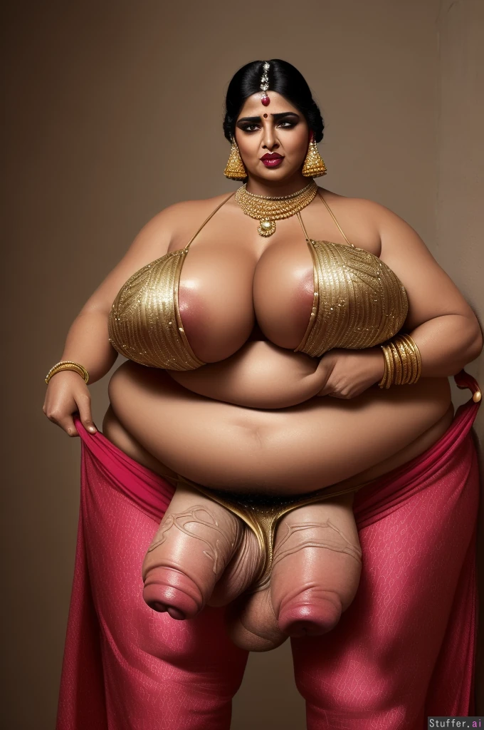 (((("Karmjit Dhillon" Hyper naughty mature dyke aunty:1.4)))), (((((overpowering hyper masculine aura))))), (((((Sardar Ethnicity:1.40))))), ((highly detailed mature face:1.2)), ((((Hardcore Butch queen)))), ((((beefy muscular butch BBW body)))), ((((Georgette salwar suit with heavy embroidery)))), (((salwar has katha print detail embroidery design:1.5))), ((Gold Tikka)), (((huge red tilaka:1.3))), (((sexy bejeweled sandals))), (((huge jhumka))), (((tons of big bangles on her wrists))), ((((tons of heavy bridal gold kundan jewels:1.4)))), (((((chunky gaudy bling))))), ((((she wears the world's largest collection of gaudy kundan jewelry)))), (((her necklace weighs 50 lbs))), ((darker undereyes)), (((huge red bindi))), ((dark areolas)), ((huge nipples)), ((((huge bimbo lips)))), ((((highly detailed fat and hefty futanari veiny cock:1.4)))), ((((her cock is absurdly thick:1.3)))), (((highly detailed testes))), ((blushing red glan)), (((bushy pubic hair))), (((hyper very saggy small breasts)), (((hyper ptosis:1.4))), (realistic skin:1.3), (((devious sly smile:1.3))), ((((sleazy persona)))), (((very sexually aggressive:1.4))), ((((perverted)))), ((((the raunchiest demeanor:1.70)))), ((((extremely arrogant)))), ((((she demands worship and admiration)))), (((perfect anatomy:1.4))), ((((she's a tyrannical sadist:1.4)))), (((intense sexual depravity))), ((she's a sex fiend)), (((dirty sexual predator))), (((((hyper alpha woman:1.4))))), ((((Insatiably horny:1.4)))), (((world's horniest woman))), (((dominant butch)))), (((femdom:1.3))), ((intense eye contact toward viewer)), (((boss bitch:1.4))), (((clearly distinct body parts:1.8))), ((wild primal lust)), (((hyper aroused:1.3))), ((((she is the epitome of a nymphomaniac)))), ((((she grabs her crotch aggressively)))), ((((panty bulge)))), ((((highly defined penis bulge in her pants)))), light diffusion, highly detailed, high fidelity rendering, 4k, (UHD|16k:1.5), full body, ((ultra high resolution|photorealistic:1.2)), (professional photography), (masterpiece:1.5), (cinematic:1.5), ((highly detailed|realistic looking body|face|eyes|mouth|skin:1.4)), cinematic lighting and shadows, (sophisticated detail:1.5), (intricate detail:1.5), (highest definition:1.15), (highest quality:1.5), ((highly detailed focus on face:1.4|salwar:1.4|naughtiness:1.8|demeanor:1.8|butch:1.6|bulge:1.4|facing_viewer|point of view from close-up|low angle)), 4k, photorealistic, highly detailed, highest quality.
