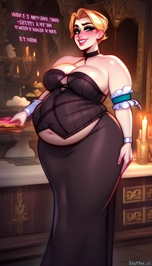 best quality, high rating, victorian, 1woman, mature, queen, bossy corrupt demanding gluttonous greedy, sexy, sly smile, big fat ssbbw feedee, belly stuffing (getting_fatter, growing_larger), bulbous engorged exposed protruding belly, insatiable hunger ravenous overeating (more food, fattening up), hyper weight gain, blushyspicy(artist) spellsx(artist)