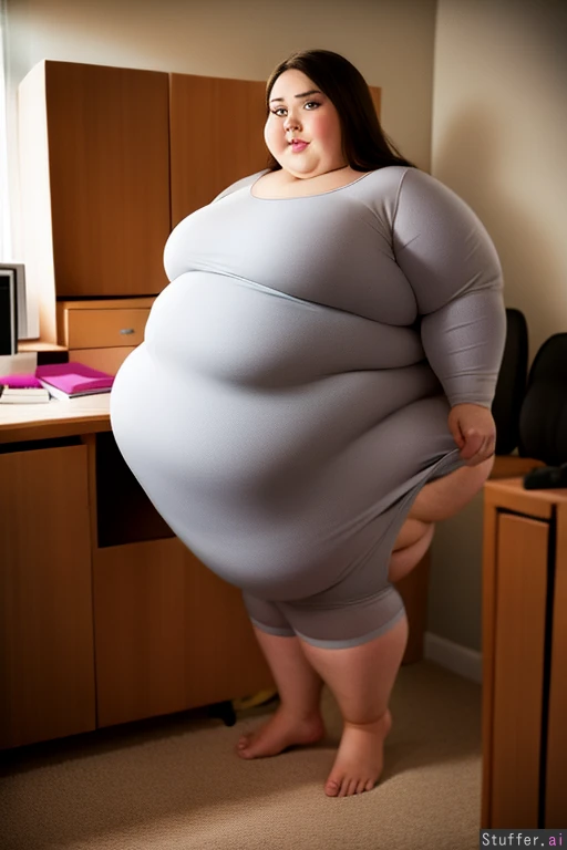 Masterpiece.lifelike realistic1.3.absurd res.1girl.Elizabeth.young fatso .beautyfull face.chubby cheeks long hair.in her room at her sturdy little desk.medical dignosis via snapchat is: progressive eating dissorder in asumed enabling environment.full body bare feet.