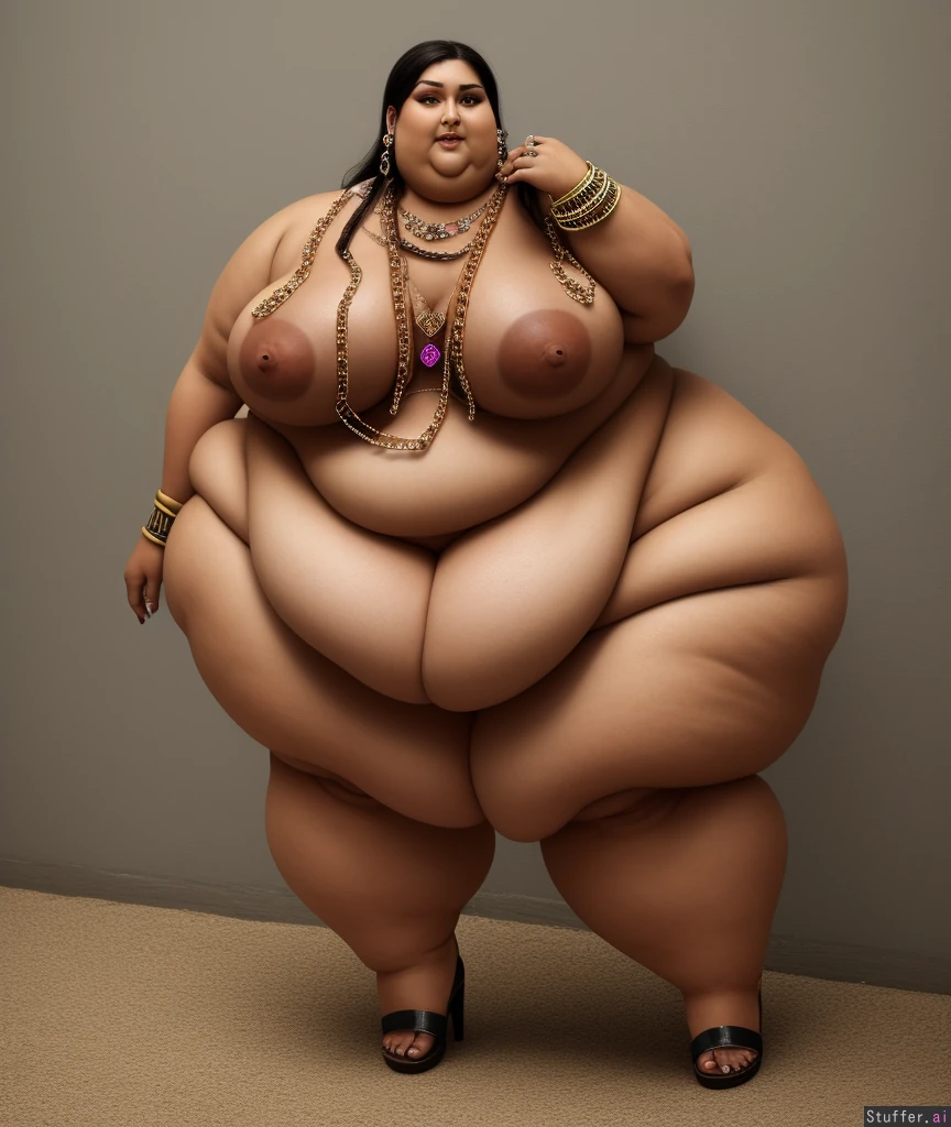 standing ((naked)) super obese roman concubine hourglass muffintop ((huge fat arms)) ((huge thighs and calves)) (((((necklaces))))) ((((bracelets)))) (((rings)))