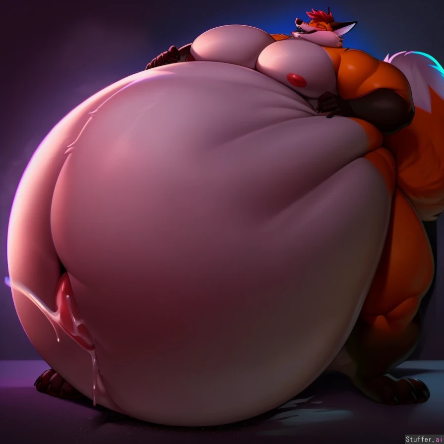 best quality, high rating, smooth skin, fat rolls, inflated, gigantic belly, inflated belly, belly bigger than whole body, male, furry, anthro, fox, pleasure, in natural habitat, male, stuffed, moobs, ssbhm, ssbbm