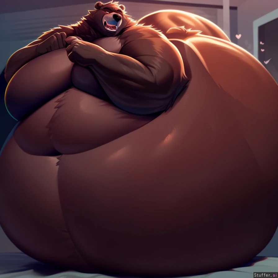best quality, high rating, fat rolls, inflated, gigantic belly, inflated belly, belly bigger than whole body, male, furry, anthro, bear, pleasure, in natural habitat, male, stuffed, moobs, ssbhm, ssbbm