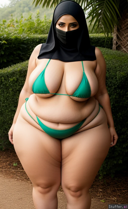 ksa_arabic_vail_niqab, hot, ((bottom heavy)) (thick thighs) (wide hips) bikini, chubby belly, massive thighs