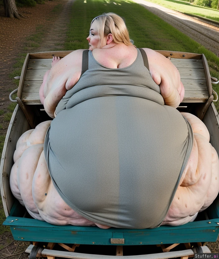 raw photograph, detailed, Emily Kinney as Beth, ((((gigantic 1500-pound ssbbw fatty being towed in a wagon)))), (((ridiculously-fat))), ((unable to move on her own anymore)), ((her giant ass filled the entire wagon))