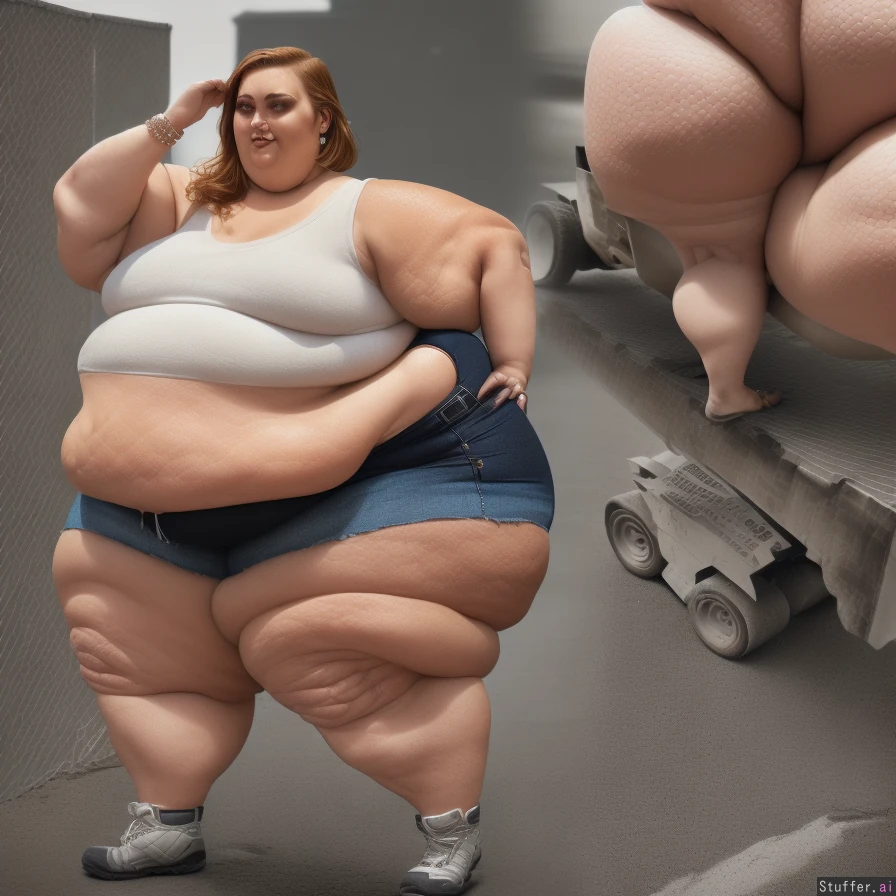best quality, high rating, highest quality, (photorealistic: 1.9); Taylor Swift; seductive playful smile; dark makeup, choker, ponytail, (naked); (detailed realistic face: 1.9), (detailed delicate features: 1.8), (stunning beauty: 1.9), (round soft features: 1.4), (perfect nose, perfect eyes, perfect jawline, perfect cheekbones), (elegant: 1.8), double chin; (wide_build, bottom-heavy figure, pear-shaped body type: 1.1); (small breasts); (big fat belly, belly rolls, deep belly button, belly hang: 1.3); (big fat arms, arm rolls, arm folds, arm creases, arm dimples: 1.4), (fat elbows, elbow creases, elbow folds, elbow dimples: 1.4), (fat wrists, wrist rolls); (big fat ass, bubble butt, dump truck ass, shelf butt, ghetto booty: 1.4); (wide fat hips, big fat love handles: 1.8); (big fat long thick plump legs: 1.6), (big fat round wide thick plump thighs, saddlebags, thigh rolls, thigh creases: 1.6), (big fat knees, knee folds, knee creases, knee dimples: 1.6), (big fat thick plump calves: 1.6), (cankles, cankle rolls: 1.6)