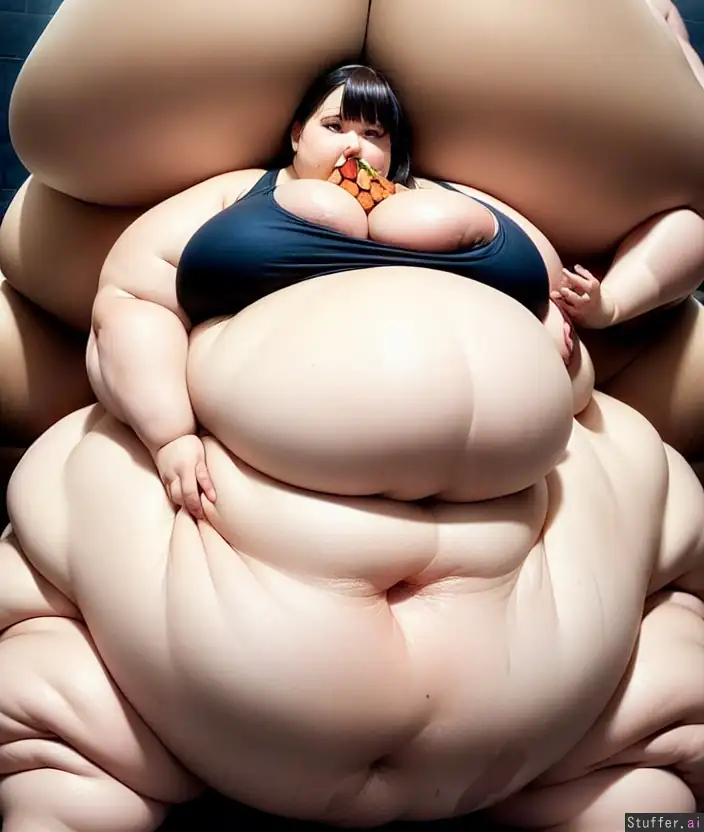 ((masterpiece) (highly detailed) (hyper realistic) (photorealistic) (best quality)) sideview of unnaturally super fat ussbbw Thylane Blondeau wearing tight Tank Top and short jeans (((she is so extremely fat her body weights over 1000kg))), sitting in a restaurant and greedy eating a huge meal, (((fully stuffed cheeks))) (((greedy overeating))), (((her belly looks like she is fifty months pregnant with triplets but fifty times bigger))), (((her belly is growing bigger and rounder and fuller and bloating up to extreme size))), (((her belly is extremely full and extremely bloated and round and growing even bigger and bigger and bigger to extreme size))), (((her humongous oversized massive bloated belly is close to burst))), (((greedy stuffing more and more food iside her mouth))), (((skin of her belly is extremely stretched))), (((her gigantic oversized massive bloated belly is much bigger than humanly possible))), (((her whole body becoming fatter and fatter and fatter to extreme size))), (((hyper pregnancy))), (((unnatural extremely massive super fat body much fatter than humanly possible))), (((extremely fat legs much fatter than humanly possible))), (((extremely fat arms much fatter than humanly possible))), (((extremely oversized unnautral gigantic fat ass much fatter than humanly possible))), (((extremely oversized unnautral gigantic fat boobs much fatter than humanly possible))), (((gigantic massive fatrolls))), (((her body weights over 1000kg)))