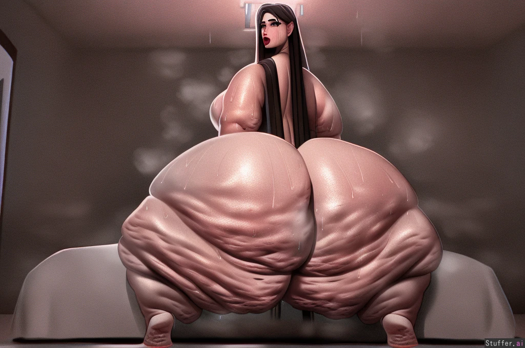 best quality, high rating, insanely detailed, hyper realistic, UHD, HDR, smooth texture, beautiful face, beautiful eyes, (((big_ass:1.2))), (((big_thighs:1.2))), (cellulite:2.0), (((pear-shaped_body:2.0))), (((huge wide hips:1.2))), fat, fat_ass, fat_belly, (((sweaty:2.0))), (((sweaty_butt:3.0))), (((sweaty_breasts:1.5))), (((sweaty_bod:3.0))), (((ssbbw)))), (((long_hair:3.0))), heavy_breathing, sexy, sexy_pose, laying_down, ass_visible_from_front, ass_bigger_than_body ass_visible_through_thighs, thick_thighs, thicc, tongue_out, touching, self_breast_sucking, self_lick, self_touching light_skin, bedroom, fat arms, (looking at viewer, facing viewer:1.4), hot, good feet, nice feet, pretty, good face, nice face