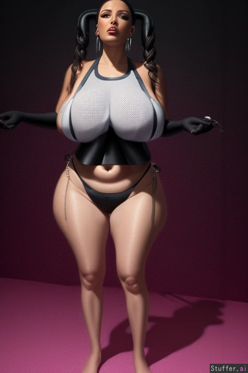 Gigantic_breasts, breast_expansion, thick_thighs, fat_thighs, swelling_breasts, bbw_dominatrix, huge_hips, front_view, full_body_perspective, bbw, crew neck tank top, tight pants, conventionally attractive , chubby, sfw, snatched waist, belly rolling over waistband, , underboob nipple_outline