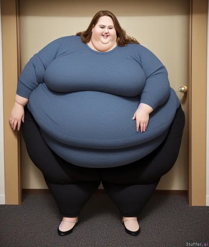 Photo-Realistic, 8K resolution, high quality, sophisticated detail, (anatomically accurate), blonde long hair, ((super obese)), ultra detailed face, ((ussbbw)), (((huge doublechin))), ((fully clothed)), ((almost immobile)), 25 year old ussbbw in black rollneck and gray sweatpants. She looks tired, drunk, flushed and stuffed. She is spotty and has greasy hair. Candid photograph. (morbidly obese), lazy, ((drunk)). Holding glass of wine, slob. Mommy_milk laughing corset massively fat very_tall ussbbw_mommy (wanting_to_cuddle)(very obese immobile huge_hips tremendous_thighs biggest_belly)(mommy_smile)(mommy_smile)((holding_belly))((hiding_behind_door))