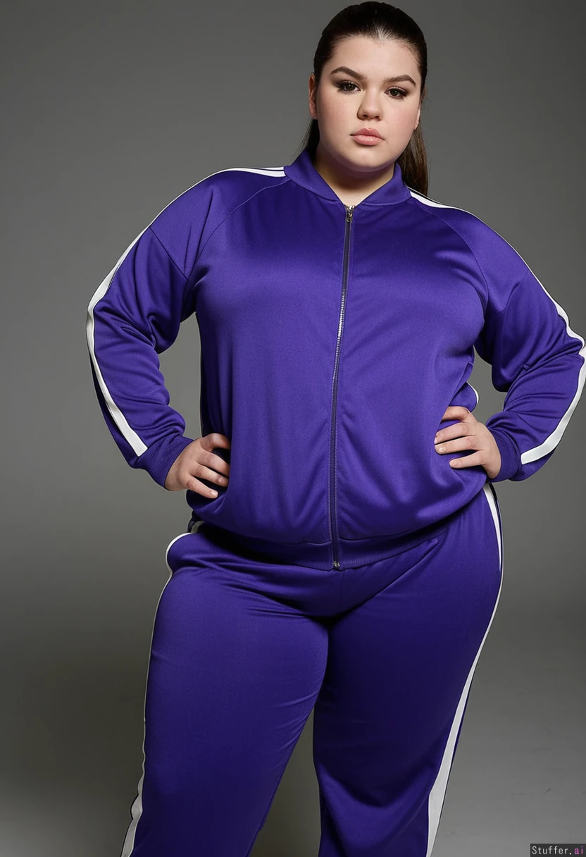 Hyper realistic, realistic lighting, raw photo Hailee Steinfeld, tracksuit, obese Standing facing viewer, hand on hip