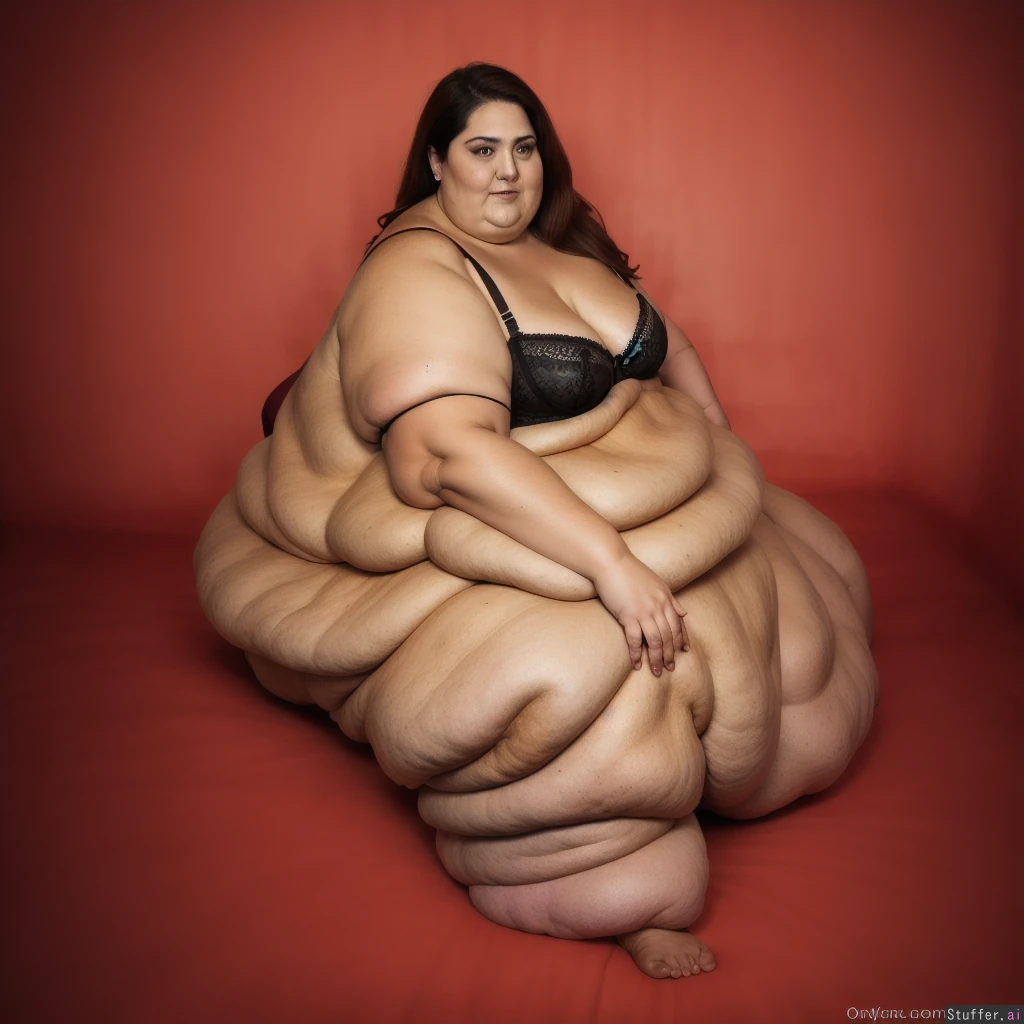 Photo realistic, highly detailed, realistic lighting, persianv ssbbw, sitting on a couch, beautiful face, brown hair:1.4, (wearing a black bra:1.4) , ultra double chin:1.8, (ultra fat face:1.8), ultra huge arms:1.9), (ultra huge legs:1.9), ultra leg rolls:1.7, (ultra huge calves:1.8), (ultra cellulite:1.6), ultra fat ankles:1.8), bare feet:1.4