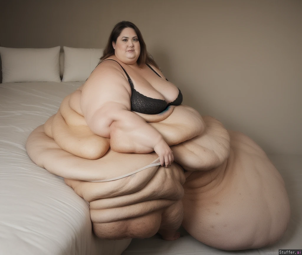 Photo realistic, highly detailed, realistic lighting, persian ssbbw, beautiful face, brown hair:1.4, (wearing a black bra:1.4) , (ultra double chin:1.9), (ultra fat face:1.9), (super ultra huge arms:1.9), (ultra huge legs:1.9), ultra leg rolls:1.7, (ultra huge calves:1.8), (ultra cellulite:1.6), ultra fat ankles:1.8), bare feet:1.4
