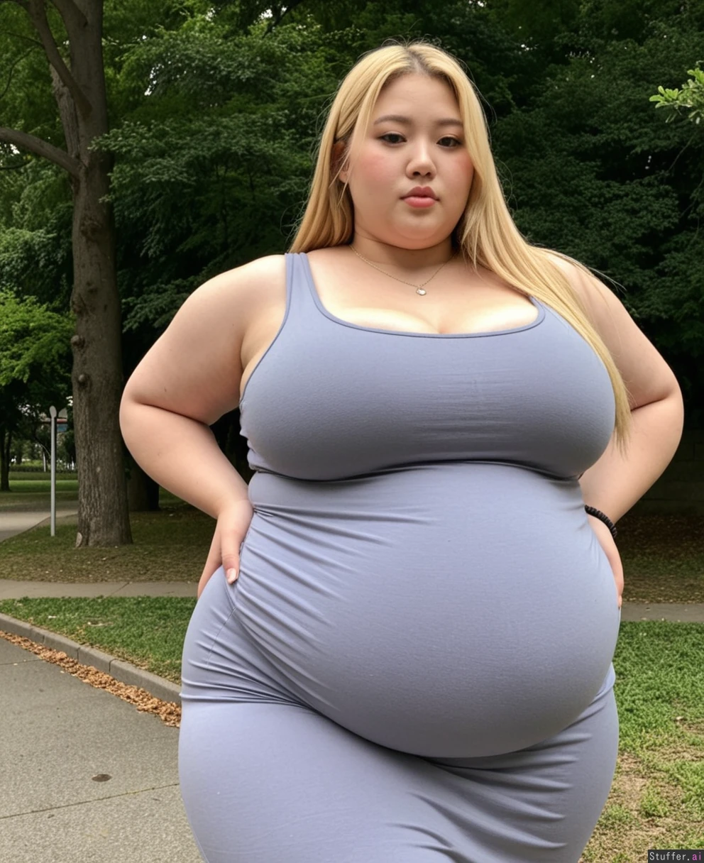 Beautiful young ssbbw in stretchy light graydress. Blonde hair. Fattest girl in her college. Korean girl, gorgeous face, super model face
