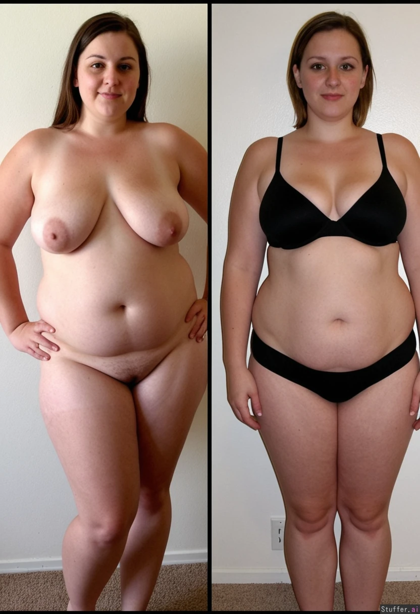 Sexy attractive pretty woman, flabby , out_of_shape, chubby, fat_belly, before_and_after