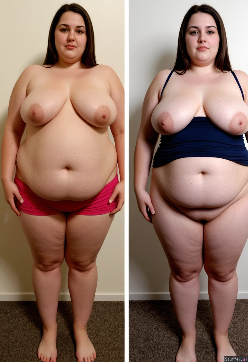 Sexy attractive pretty woman, flabby , out_of_shape, chubby, fat_belly, before_and_after, apple-shaped_body , pudgy_belly , sexy_pose , gaining_weight, belly_bursting_out_of_clothes , office_lady