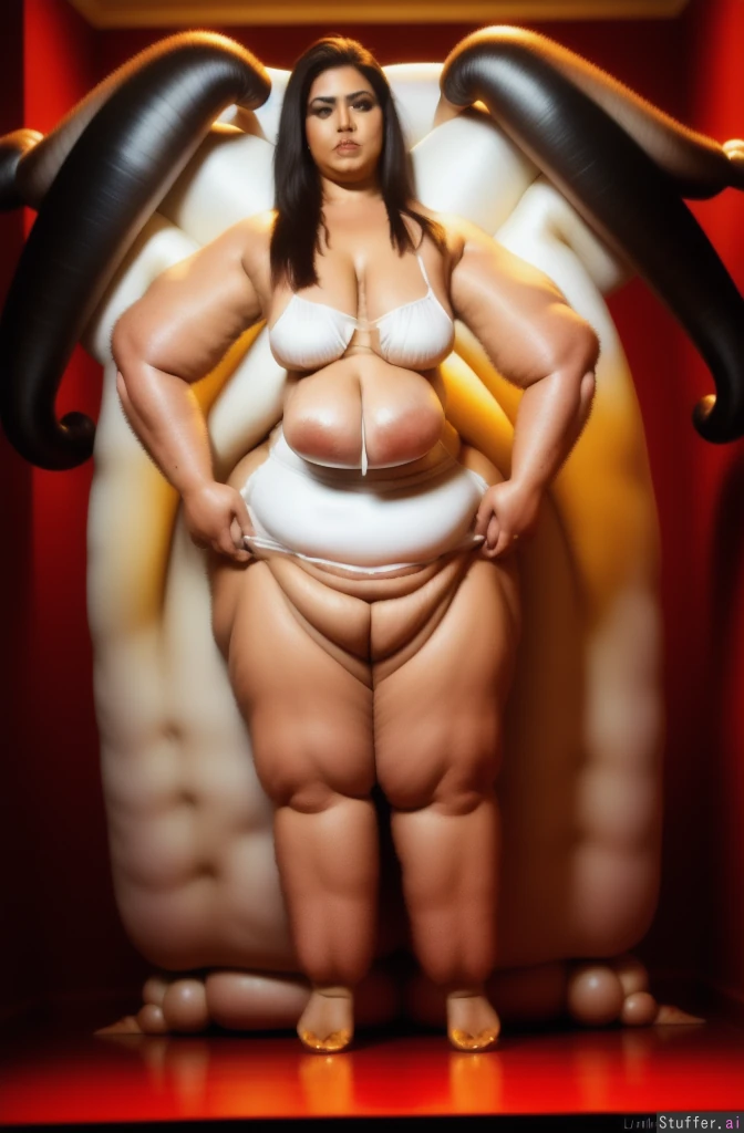 realistic, high quality, latina bbw, wearing a white bikini, (ultra huge arms:1.9), (ultra huge legs:1.9), (ultra leg rolls:1.6), (ultra arm roll:1.5)