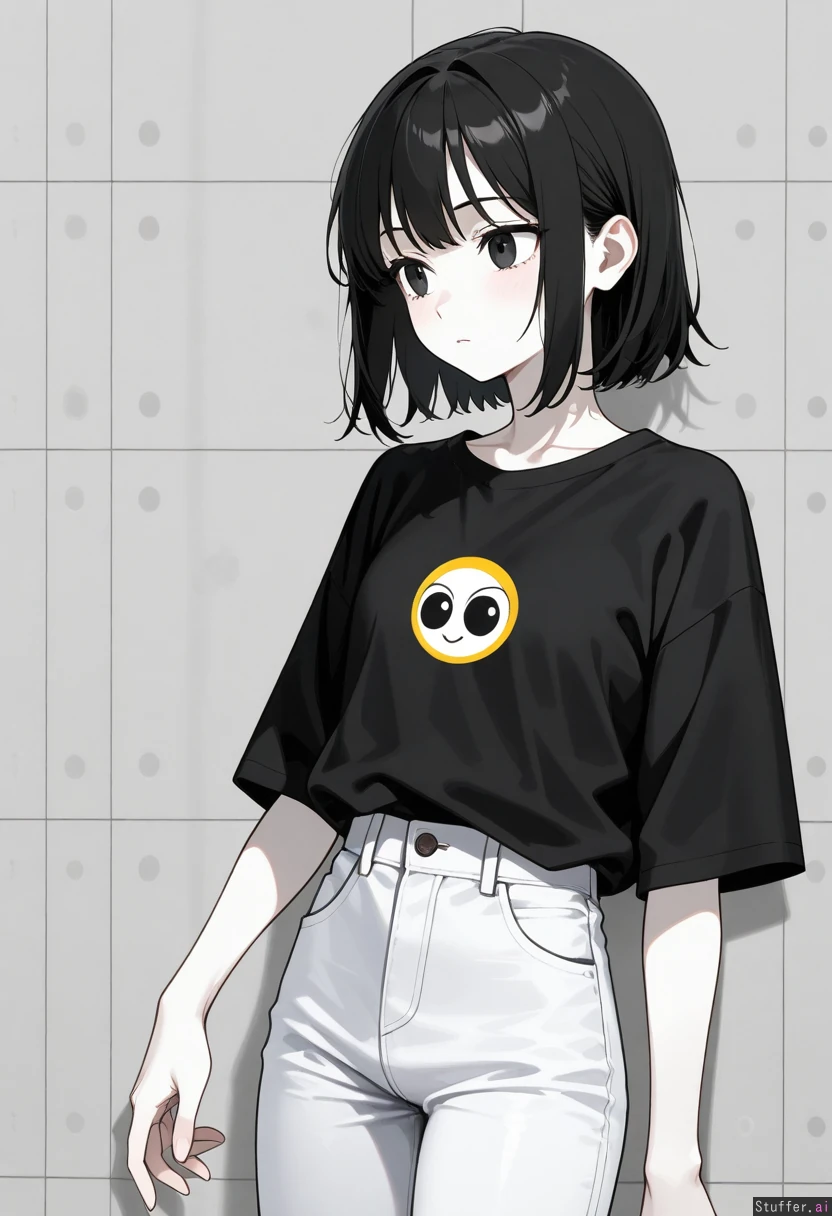 miss circle (fpe), white skin, black hair, black shirt, white jeans