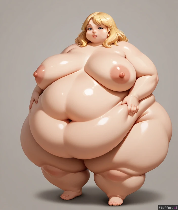 Obese, fat, doughy, heavy, round, feminine, fat_breasts, fat belly, double_belly, extra_thick_thighs, blonde_hair, Feedee, immobilized