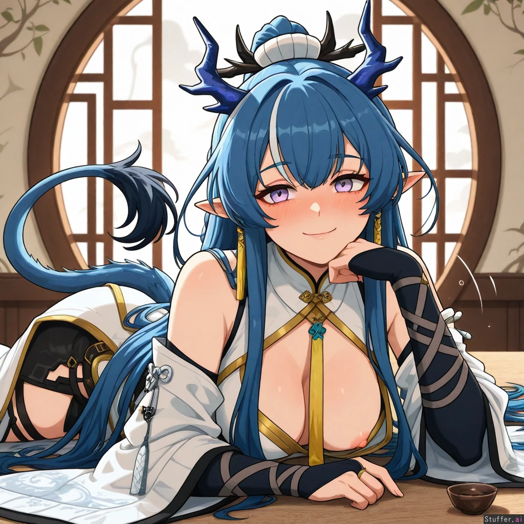 Masterpiece, UHD, HDR, intricate detail, absurd resolution, solo, absurd details, absurd anatomy, (Kinkymations(artist):0.8), ling_(arknights):1.2, drunk:1.3, (tall beatiful mature woman with medium breasts), (ling outfit), (operator outfit), pagoda background, drinking alcohol, floating bubbles aroud head, heavy blushing, lying at ground, nipple_slip:1.2,