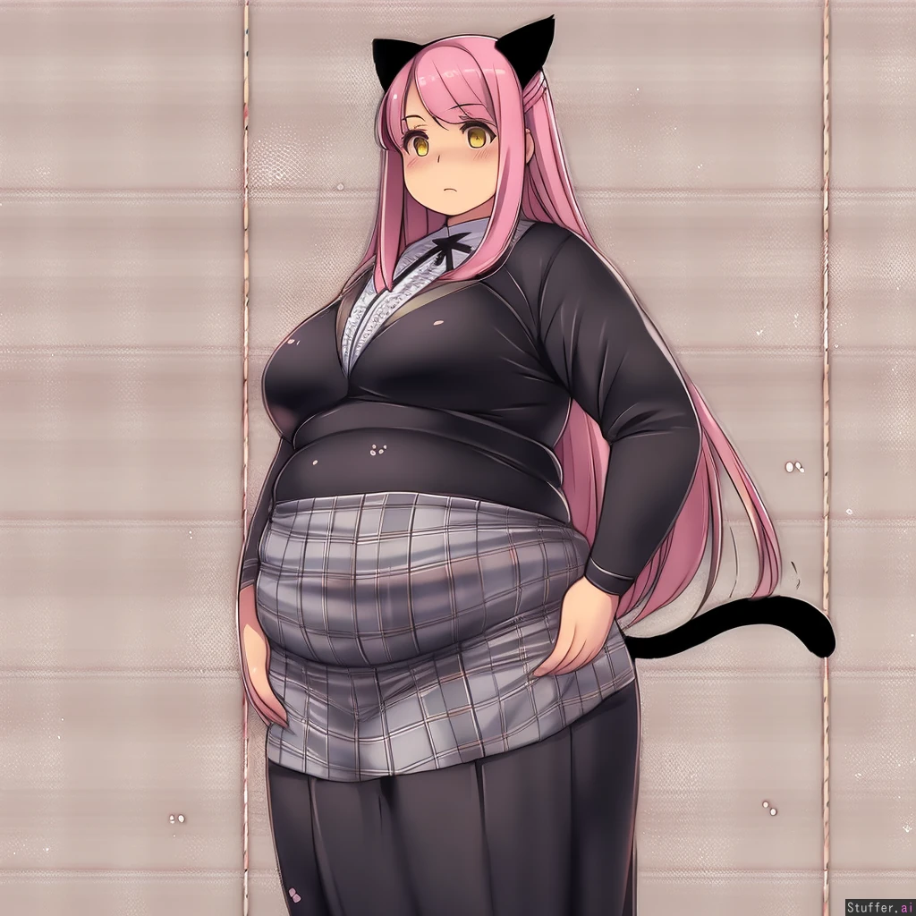 best quality, high rating, betterwithsalt (artist), kurocaze-s (artist), miramiraclerun (artist), KipTeiTei (artist), Orristerioso (artist), c.cu (artist), pixiveo (artist), 1 girl, solo, long straight hair, pink hair, yellow eyes, cat ears, cat tail, gray bodysuit, park, standing, expressionless,