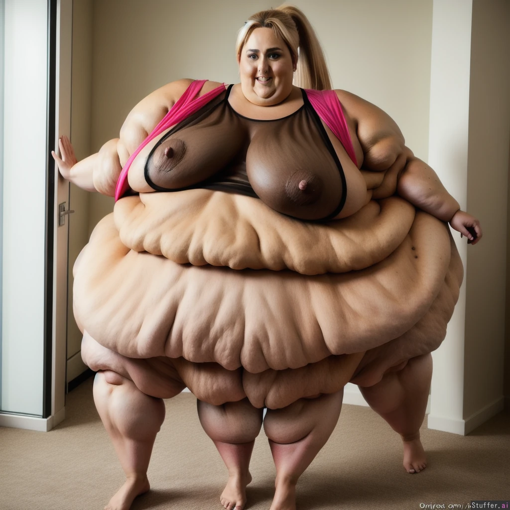 *rebel wilson) (dark tanned skin:1.4) (ponytail) hospital ((mega-fat legs:1.5)) (gigantic breasts:1.5) happy nipples (see-thru sheer top) ((8K Ultra-high definition:1.4))