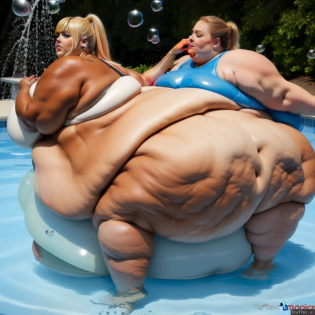 ssbbw (18K Ultra-HD) (rebel wilson:1.3) ponytail earrings (high definition) blonde, ssbbw, (dark tanned skin:1.5), (full body:1.2) ((puffy squishy:1.2)) (rebel wilson kissing samus) ((massive slumping belly:1.9)) nipples, (sagging under-belly;1.9) (blue eyes) teeth ((blue eyes, makeup)) 1girl (side view) (double chin:1.6) ((showering:1.0)) ((blue eyes;1.5)) (((bubble butt:1.5))) ((inflated breasts:1.6))