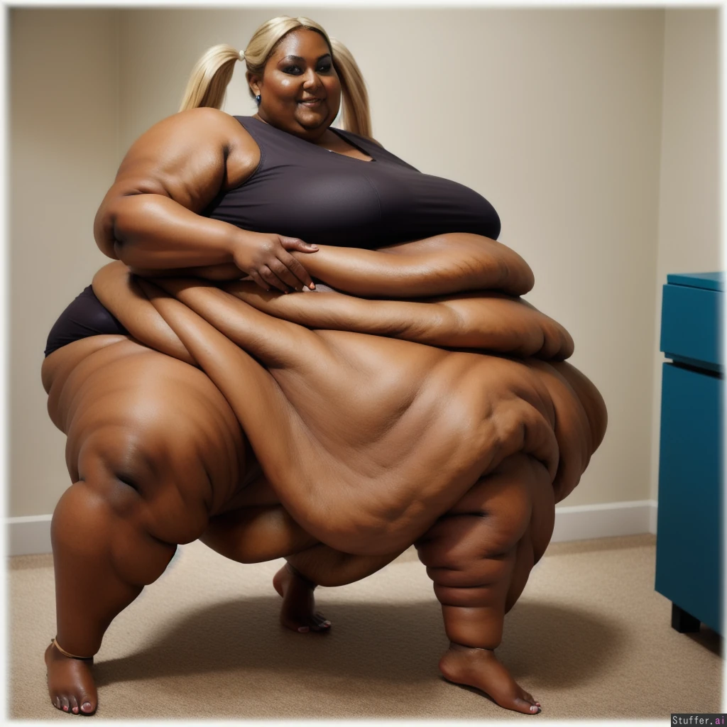 ssbbw nurse ((fat legs:1.5)) blonde, pigtails (dark tanned skin:1.5)