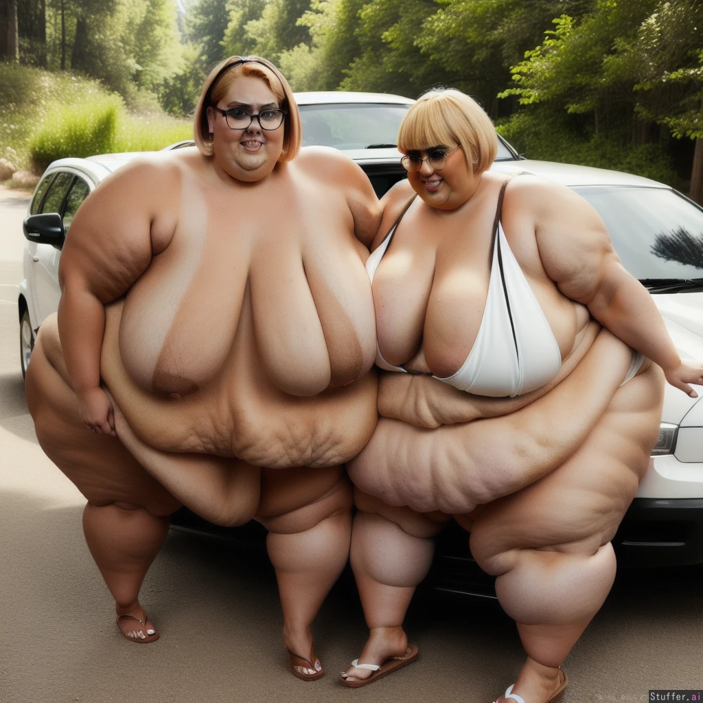 ssbbw tall blonde (rebel wilson) ((UHD, 8K ultra-HD)) ((highly detailed face:1.4)) ((flip flops:1.2)) glasses cleavage ((fat face:1.5)) ((short hair)) (((extremely fat arms;1.9))) (dark tanned skin:1.4) ((((((((super-gigantic breasts:1.5)))))))