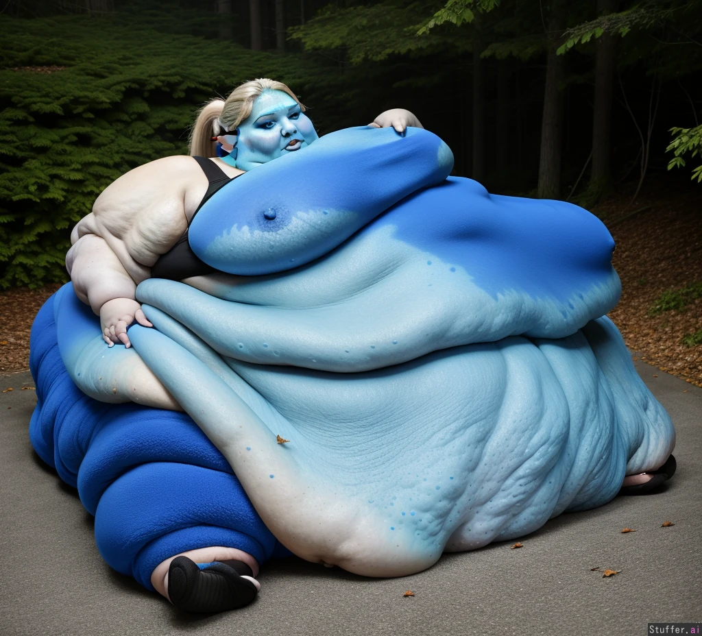 ((((morbidly obese:1.2)))) ((((immobile blubber blob:1.2)))) ((blue colored skin:1.3)) blonde, ponytail, elf