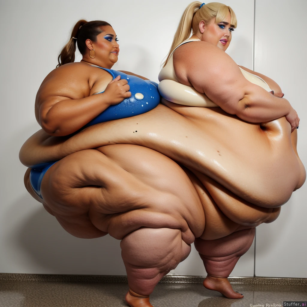 ssbbw (18K Ultra-HD) (rebel wilson:1.3) ponytail earrings (high definition) blonde, ssbbw, (dark tanned skin:1.5), (full body:1.2) ((puffy squishy:1.2)) (rebel wilson) ((massive slumping belly:1.9)) nipples, (sagging under-belly;1.9) (blue eyes) teeth ((blue eyes, makeup)) 1girl (side view) (double chin:1.6) ((showering:1.0)) ((blue eyes;1.5)) ((widest butt:1.5))) ((inflated breasts:1.6))