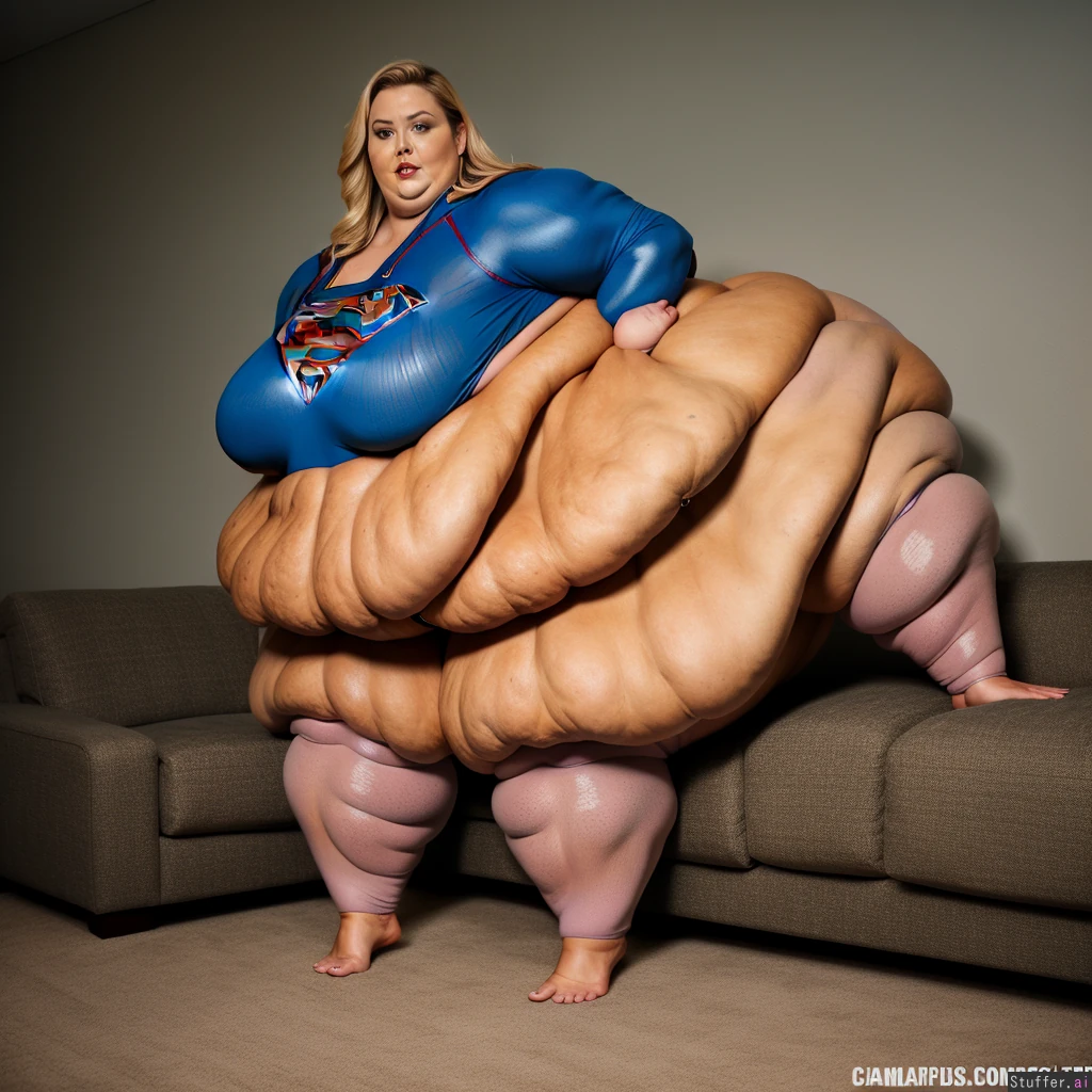 ssbbw (supergirl) (deep tan) (puffy cellulite:1.2) (hyper lymphedema:1.2) alone solo (full body) (gigantic breasts) ((bottom heavy:1.3)) ((muscular arms, legs:1.5))