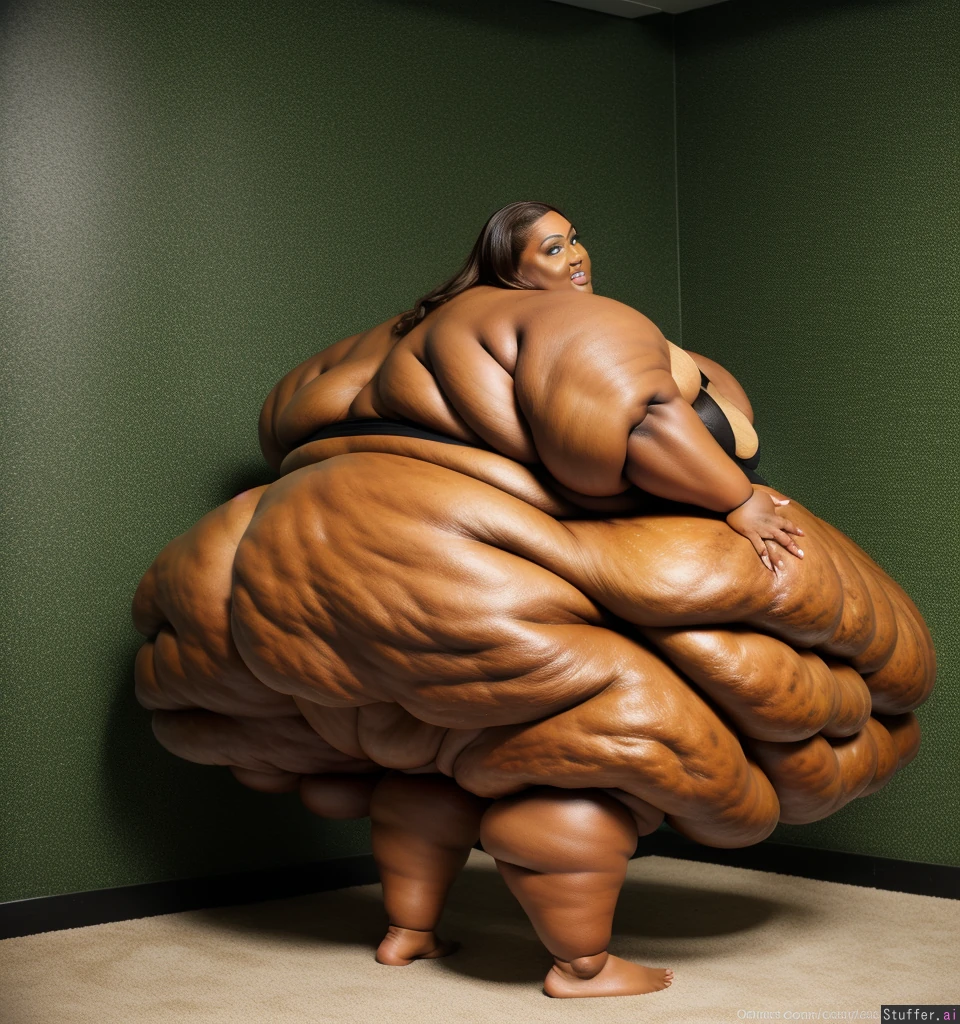 (rebel wilson) room (deep tan) alone solo (full body) (hyper-long, mega-slumping, mega-gigantic breasts:1.2) ((bottom heavy:1.2)) ((massive arms:1.3)) (side view;1.2) ((mega-fat legs:1.2)) (dark tanned skin:1.5)