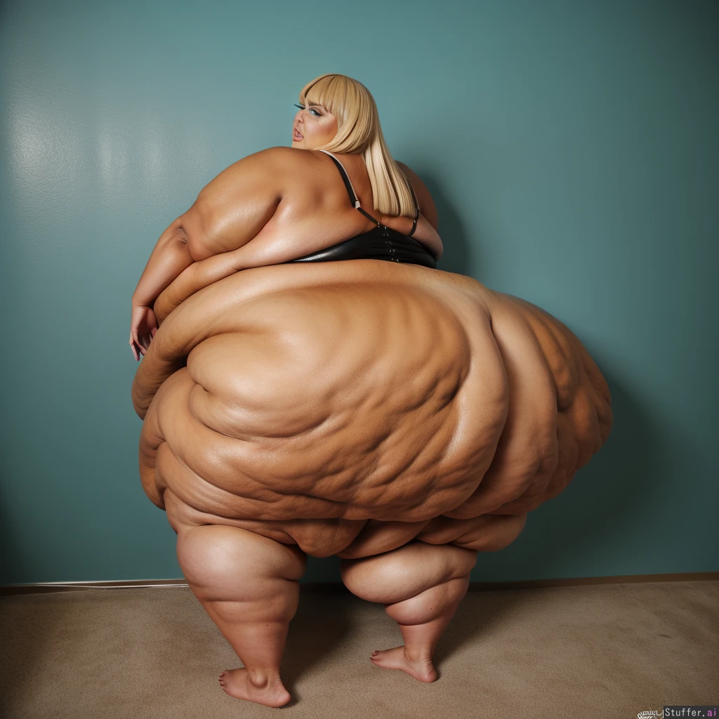 (rebel wilson:1.3) room (deep tan) alone solo (full body) (hyper-long, mega-slumping, mega-gigantic breasts:1.2) ((bottom heavy:1.2)) (side view;1.2) ((mega-fat legs:1.2)) (dark tanned skin:1.5) windy (((mega-fat ass:1.3)))