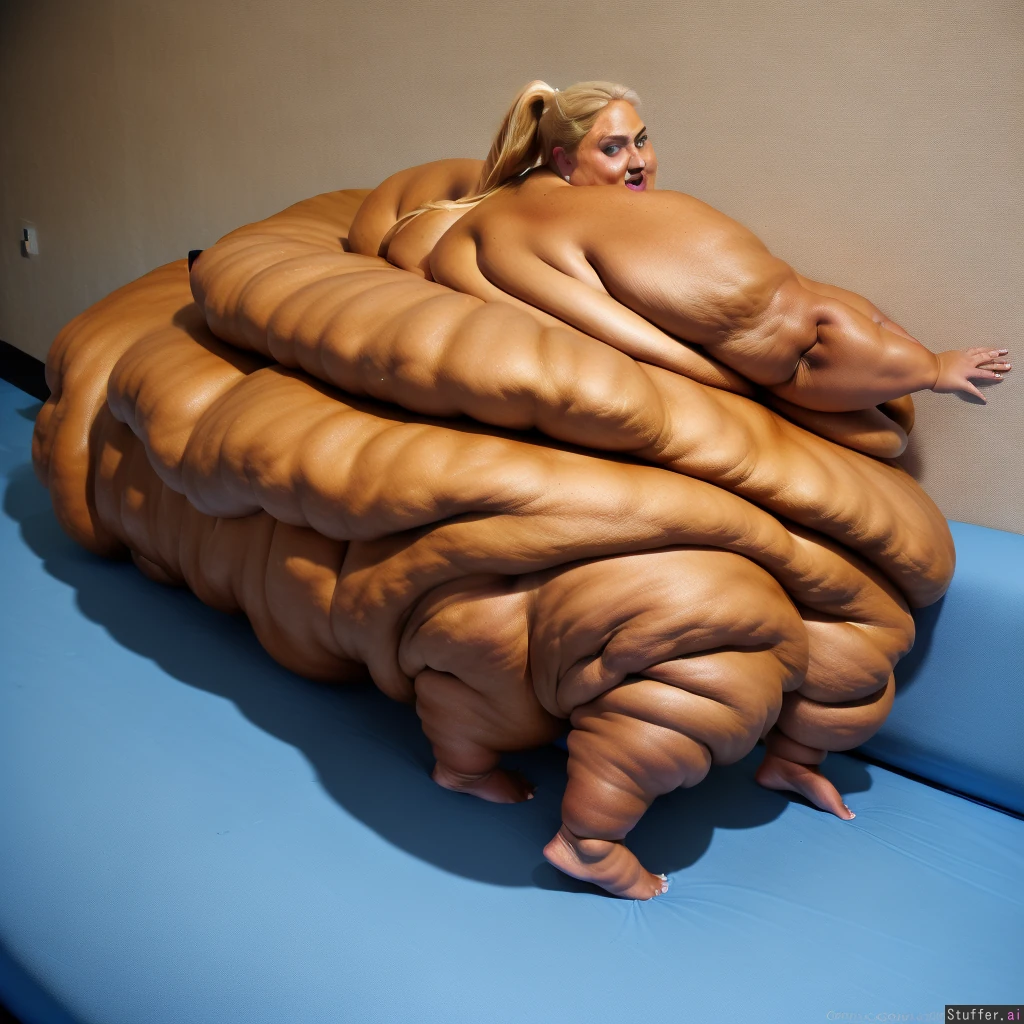 (rebel wilson:1.3) room (deep tan) alone solo (full body) (hyper-long, mega-slumping, mega-gigantic breasts:1.6) ((bottom heavy:1.6)) (side view;1.2) ((mega-fat legs:1.6)) (dark tanned skin:1.5) windy (((mega-fat belly:1.3))) (ponytail)