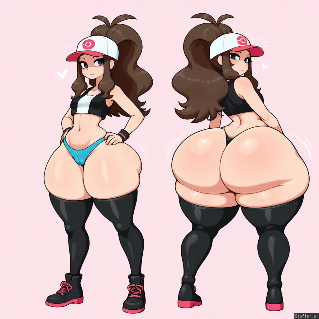 merunyaa, usa37107692, nyantcha, limebreaker, ohasi_art, krekkov, betterwithsalt, (Beautiful Face), (Half Open eyes), (Beautiful eyes), (Seductive), (small breasts), (thin upper body), (extremely_toned_body:1.2),(gigantic_fat_thighs:1.4), (big_fat_ass:1.4), (enormous wide hips:1.4), (gigantic_fat_thighs), (hyper ass), hilda_(pokemon) , three-quarter_portrait , full-length_portrait , fully_clothed , flat_belly , thin_waist , hyper_hips , cameltoe , wide_stance , wide_ass , wide_hips , thick ankles , bottomheavy , one character, one female , thong ,