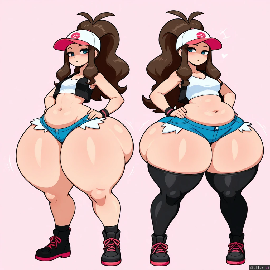 merunyaa, usa37107692, nyantcha, limebreaker, ohasi_art, krekkov, betterwithsalt, (Beautiful Face), (Half Open eyes), (Beautiful eyes), (Seductive), (small breasts), (thin upper body), (extremely_toned_body:1.2),(gigantic_fat_thighs:1.4), (big_fat_ass), (enormous wide hips:1.4), (gigantic_fat_thighs), (hyper ass), hilda_(pokemon) , fully_clothed , flat_belly , thin_waist , hyper_hips , cameltoe , wide_stance , wide_ass , wide_hips , thick ankles , bottomheavy , one character, one female ,
